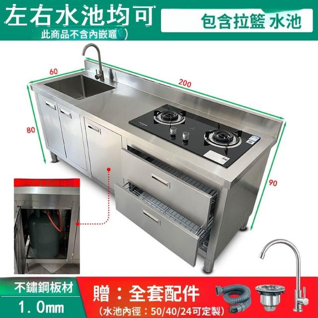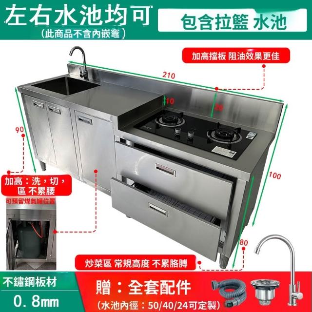 含稅/含運 304不銹鋼工作臺帶水池平臺水槽一體竈臺櫃飯店商用家用廚房櫥櫃A