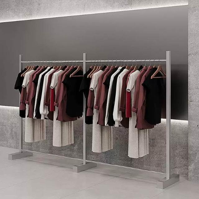 含稅/免運 服裝店展示架不銹鋼方管落地陳列掛衣桿女裝店不銹鋼男裝中島貨架