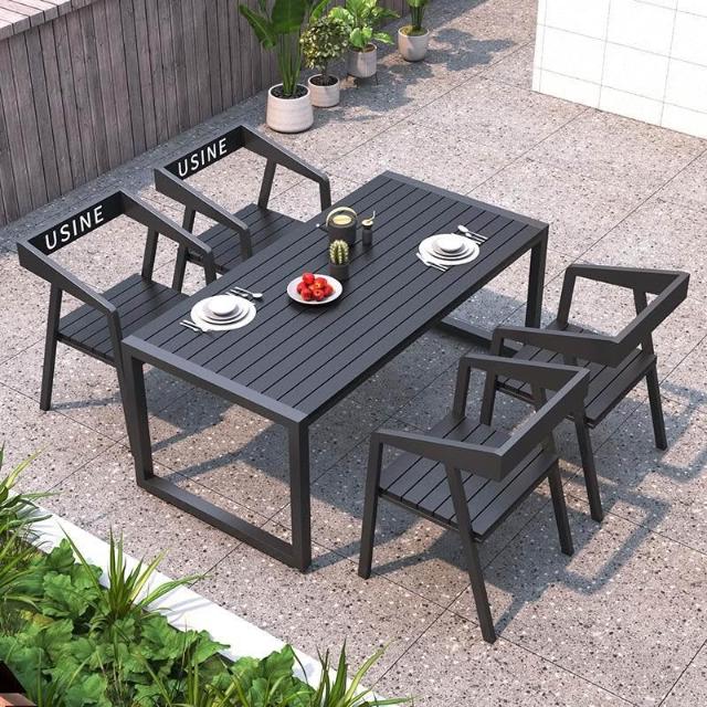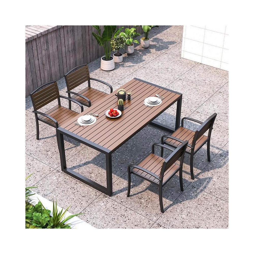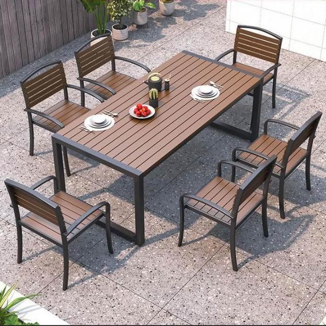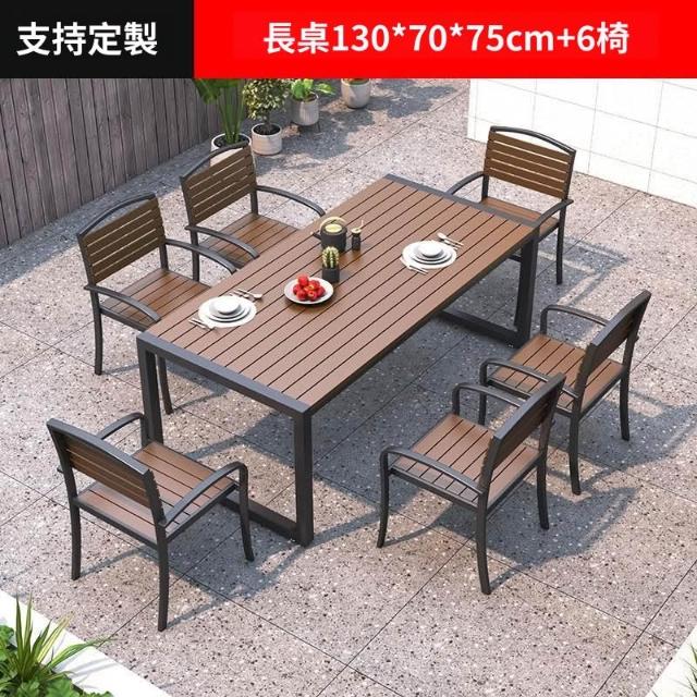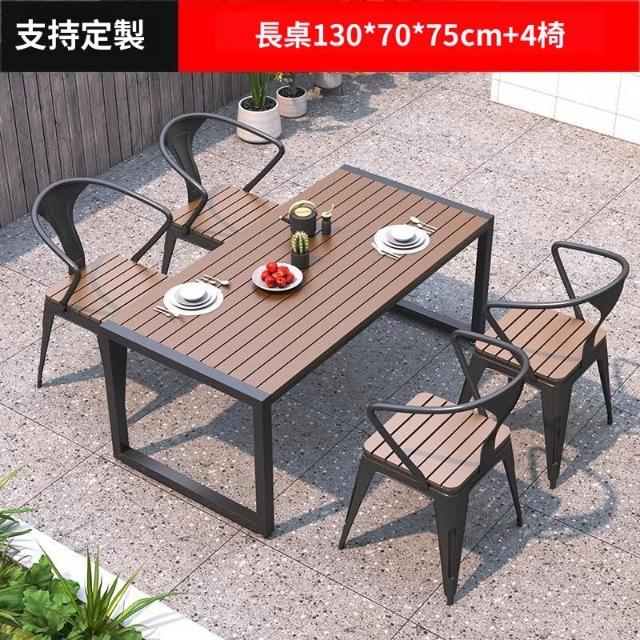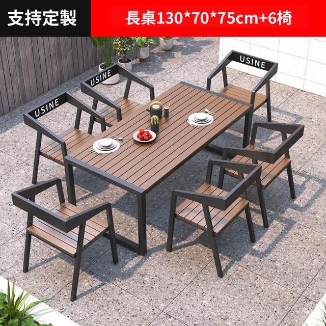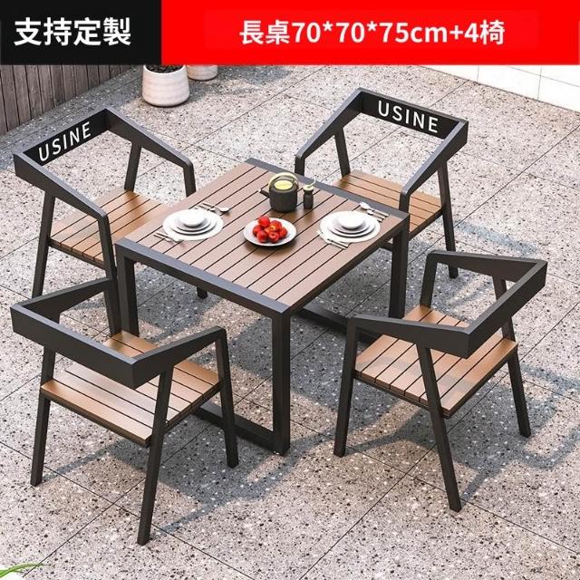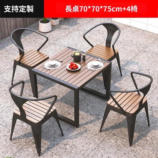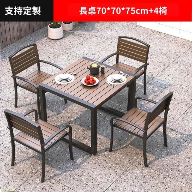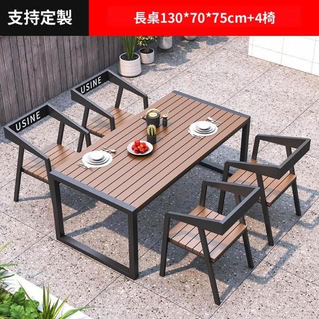 含稅/免運 戶外庭院桌椅室外防水防曬餐桌公園休閑陽臺鐵藝塑木燒烤桌椅組合