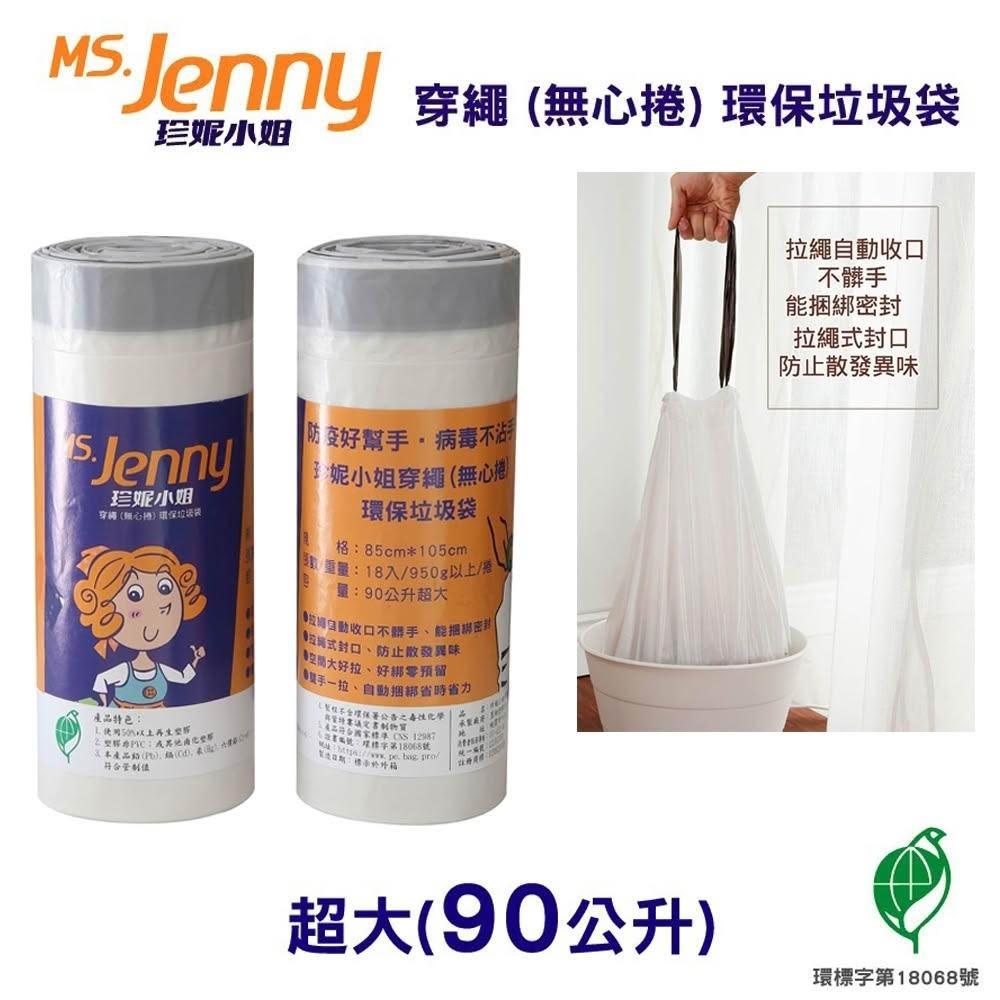 MS.Jenny珍妮小姐 90公升 (超大) 85x105cm 本色 穿繩環保垃圾袋 (18入x9捲