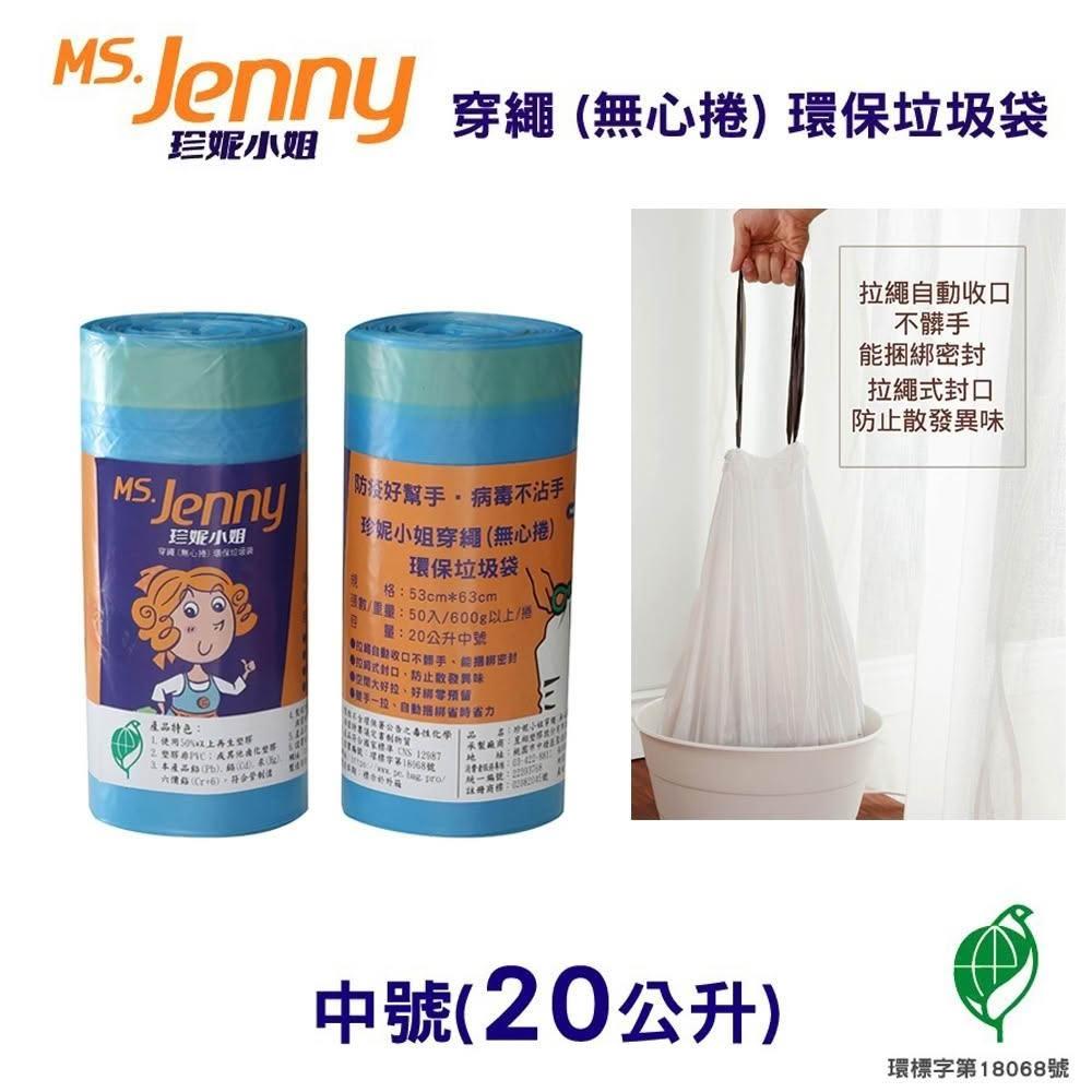 MS.Jenny珍妮小姐 20公升 (中) 53x63cm 藍色 穿繩環保垃圾袋 (50入x13卷