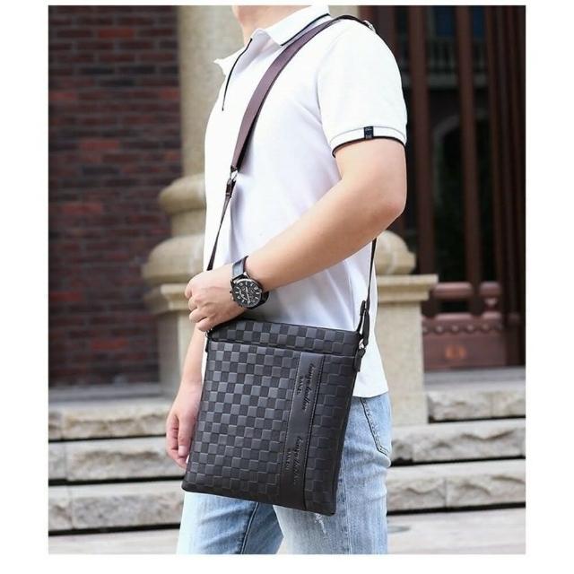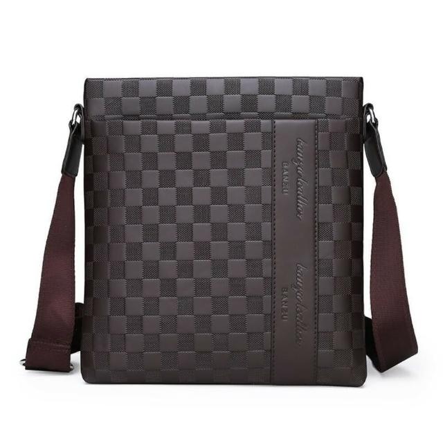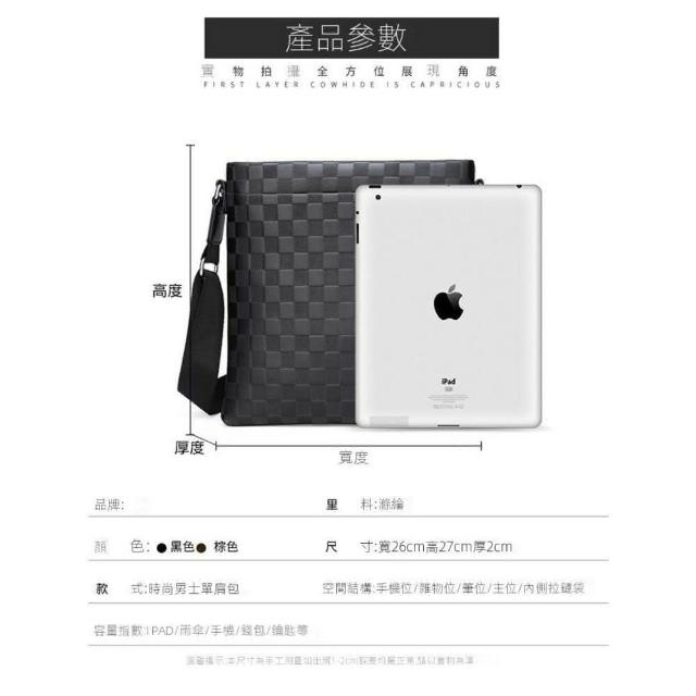 stbyby tw 流行男包 斜挎包 男士單肩包 軟皮商務包 休閒棋盤格肩背包 斜挎包 潮流斜跨包 單肩包(流行男包)