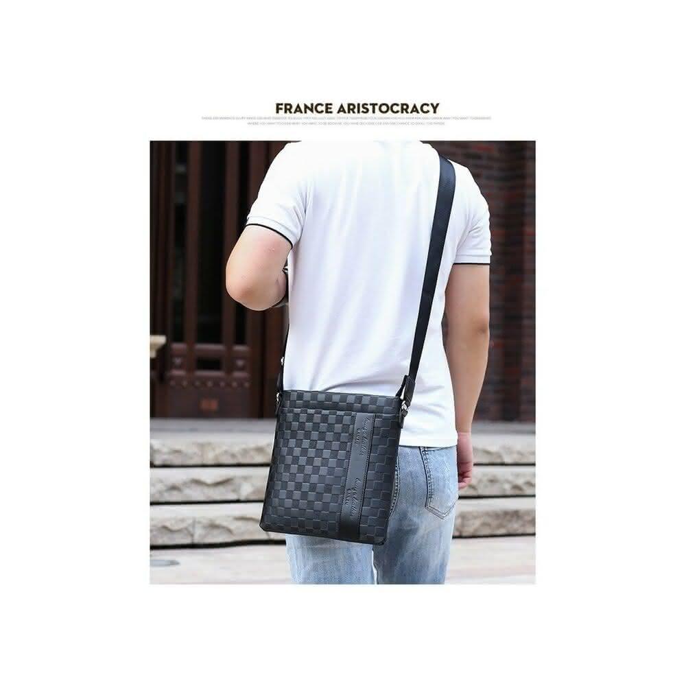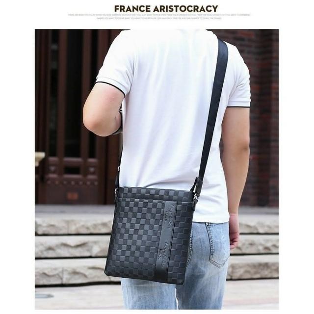 stbyby tw 流行男包 斜挎包 男士單肩包 軟皮商務包 休閒棋盤格肩背包 斜挎包 潮流斜跨包 單肩包(流行男包)