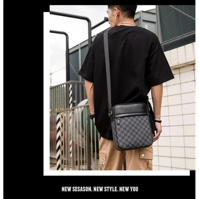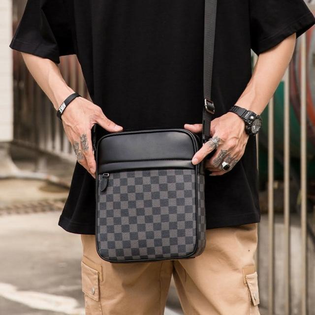 stbyby tw 斜挎包 男時尚格子單肩包 潮流防水側背包 隨身豎款挎包 男性休閒包 ins男包 方格包(斜挎包)