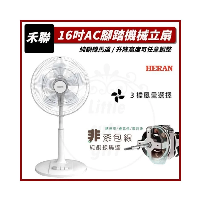 HERAN 禾聯(免運 領劵再折扣) 16吋AC腳踏機械立扇 HAF-16AH55A 電風扇 電扇 純銅線馬達 禾聯電扇 機械風扇