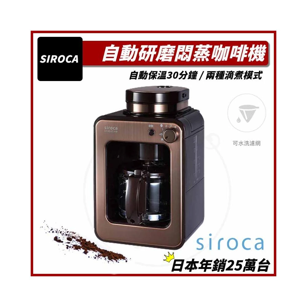 Siroca(新品免運) 自動研磨咖啡機 SC-A1210 紅/棕 電動磨豆機 全自動咖啡機 咖啡研磨機