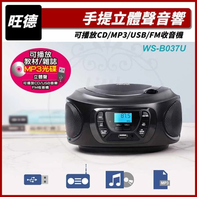WONDER 旺德(領劵再折扣) 手提 CD/MP3/USB立體聲音響 WS-B037U 手提音響 喇叭 CD音響