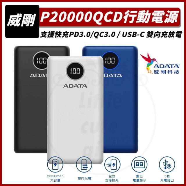ADATA 威剛(領劵再折扣) 行動電源 P20000QCD 移動電源 20000mAh 快充 2.1A 充電器