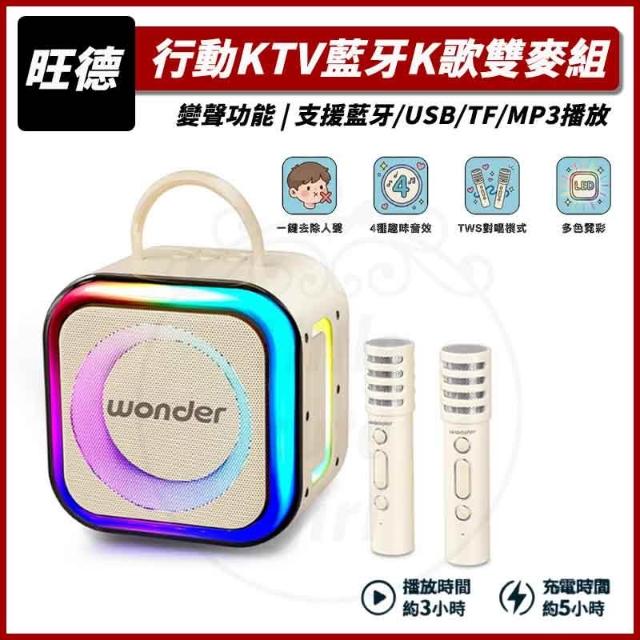 WONDER 旺德(新品免運) 行動KTV藍牙K歌雙麥組 奶茶白 WS-T052U 藍芽喇叭 音響