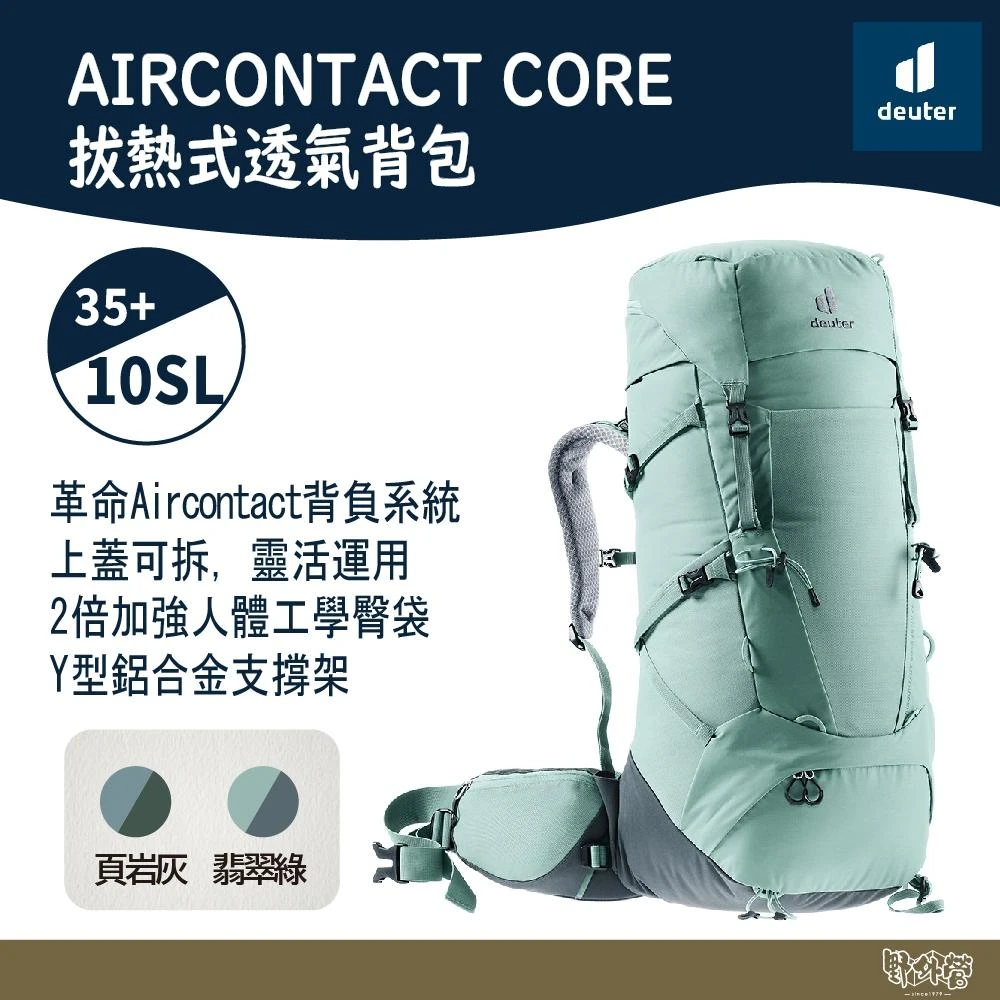 deuterAIRCONTACT CORE拔熱式透氣背包35+10SL 3350022 灰/綠 野外營 女性窄肩款