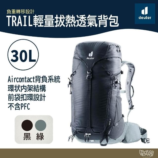 deuterTRAIL輕量拔熱透氣背包/登山背包 30L 3440724 黑/綠 野外營 透氣背包