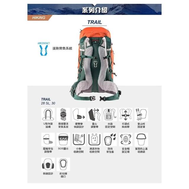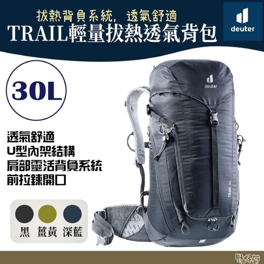 deuterTRAIL輕量拔熱透氣背包/登山背包 30L 3440521 黑/薑黃/深藍 野外營 透氣背包