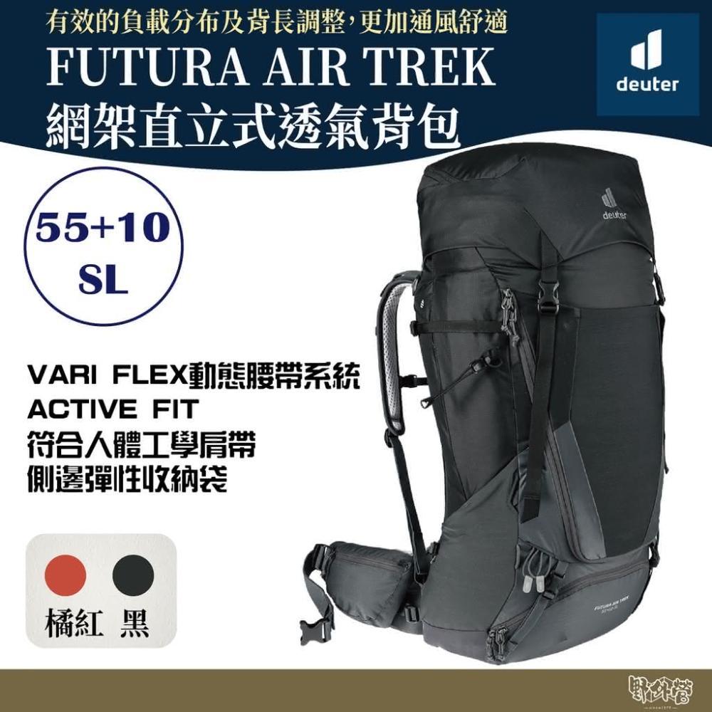 deuterFUTURA AIR TREK網架直立式透氣背包 登山 55+10SL 3402221 黑/紅 野外營