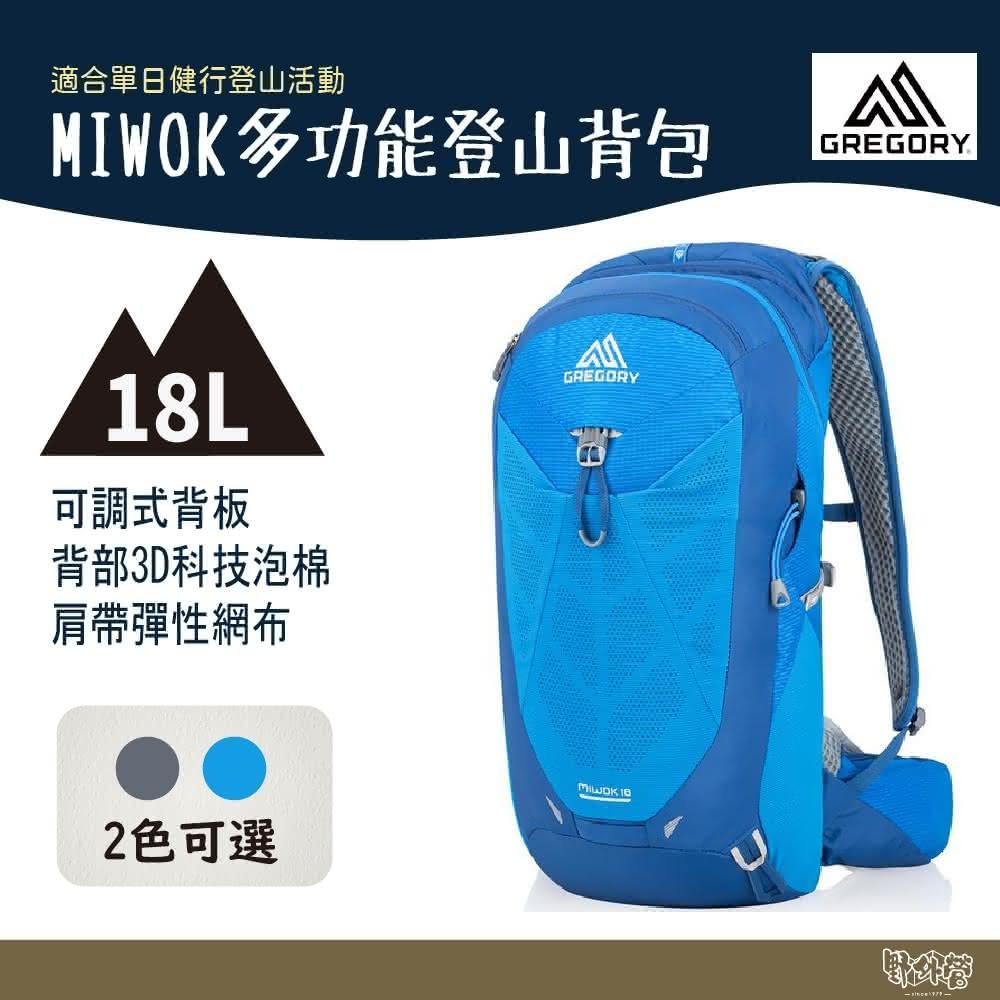 Gregory18L MIWOK 多功能登山背包 碳黑 射光藍 GG111480 野外營 男款 登山包 健行包