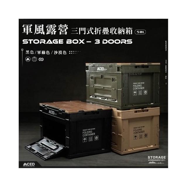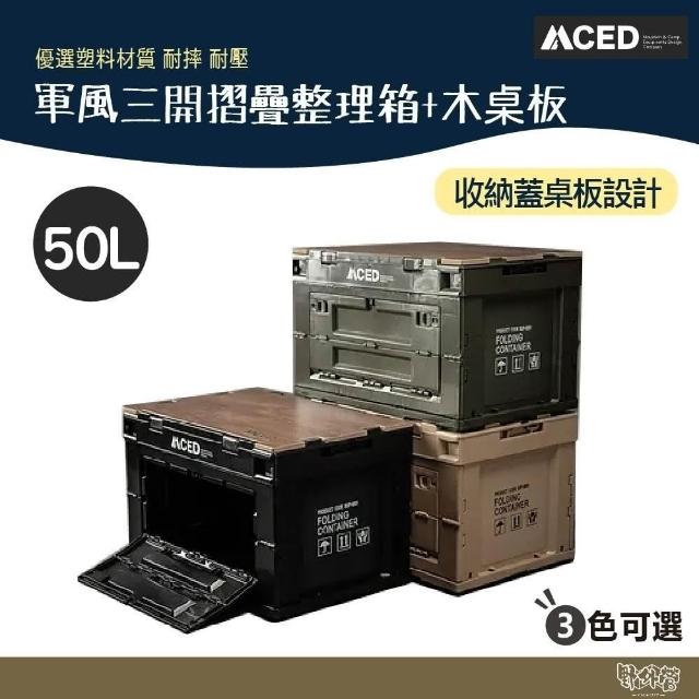 MCED軍風三開摺疊整理箱-50L+木桌板 黑/綠/沙 野外營 露營 收納箱 折疊箱 整理箱