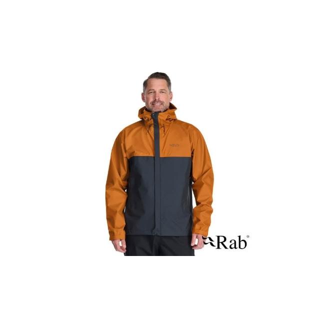 RAB英國 Downpour Eco Jacket 輕量 防風 防水 連帽外套 男款 橙/灰 QWG82 野外營 登山