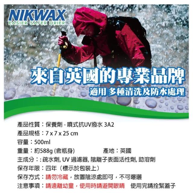 NIKWAX 噴式抗UV撥水劑 3A2(500ml)野外營 露營裝備保養 背包防水噴霧 帳篷保養 帳篷防水