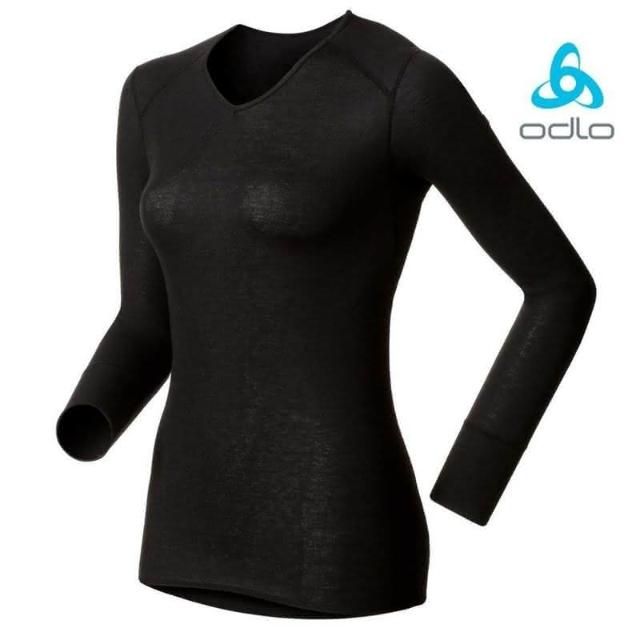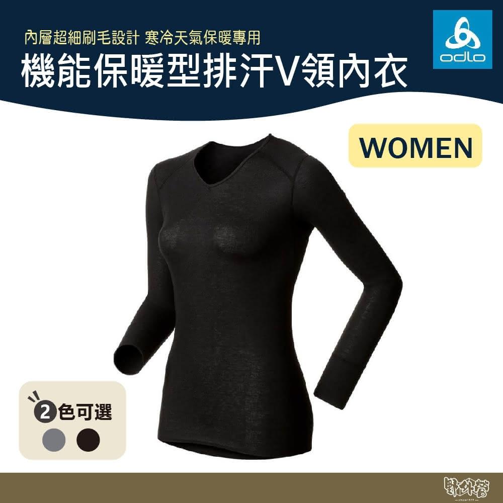 ODLO女 V領機能保暖型排汗內衣 190881 黑/深麻灰 野外營 保暖內衣 V領 雪地內衣 發熱衣