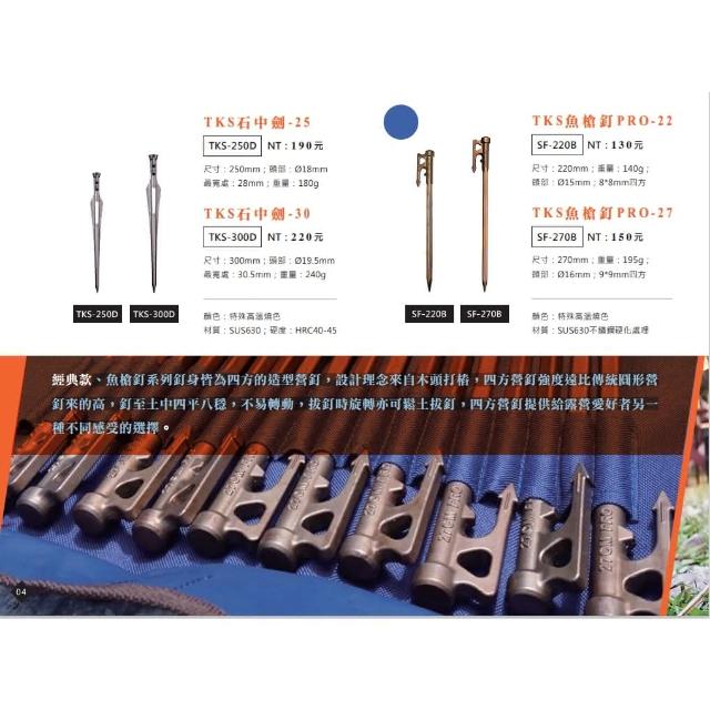TKS630不鏽鋼魚槍釘PRO 22/27cm 野外營 台灣製 登山 露營 野炊 營釘 魚槍營釘