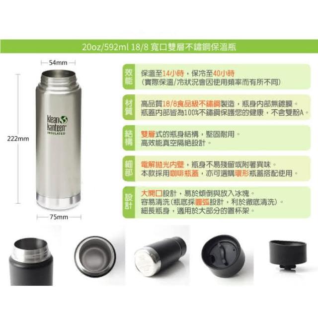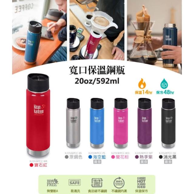 Klean Kanteen出清特價 20oz寬口保溫瓶咖啡蓋 K20VWPCC 紫/黑 野外營 592ml 保溫瓶