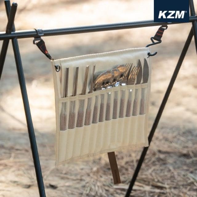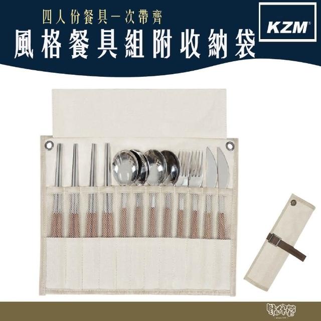 KZMKAZMI 風格餐具組附收納袋 野外營 湯匙 筷子 叉子 刀子 4人份組 餐具收納袋 露營餐具