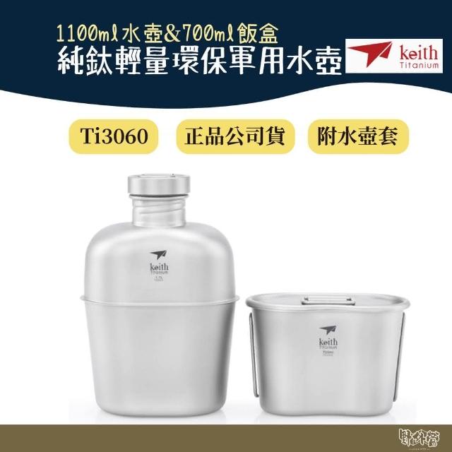 Keith鎧斯 Ti3060 純鈦輕量環保軍用水壺 附含蓋飯盒 戰術壺套 野外營 1100ml 水壺 700ml 飯盒