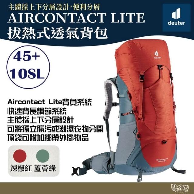 deuterAIRCONTACT LITE拔熱式透氣背包 45+10SL 3340421 紅/綠/黑 野外營