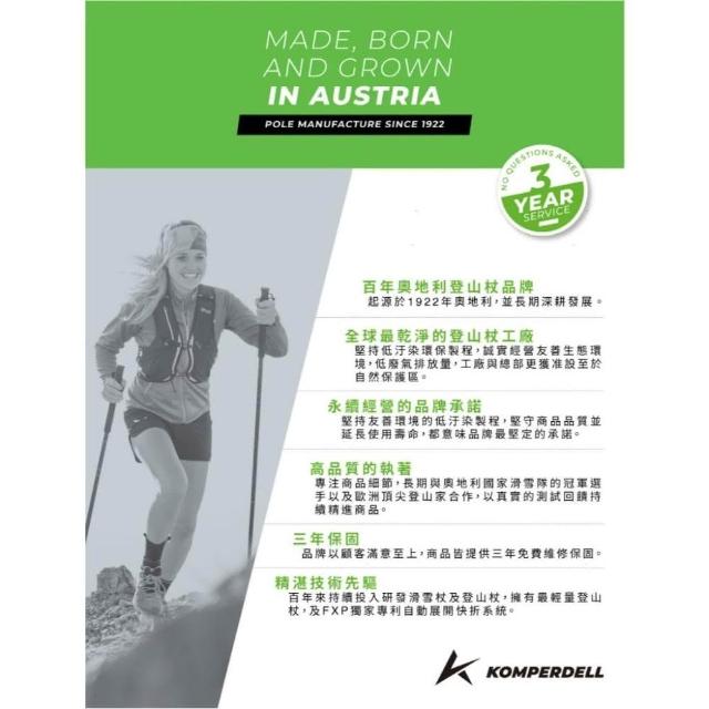 KOMPERDELL奧地利 輕量碳纖+鈦金強力鎖定登山杖 175237010 黑 野外營 健行登山 碳纖輕量
