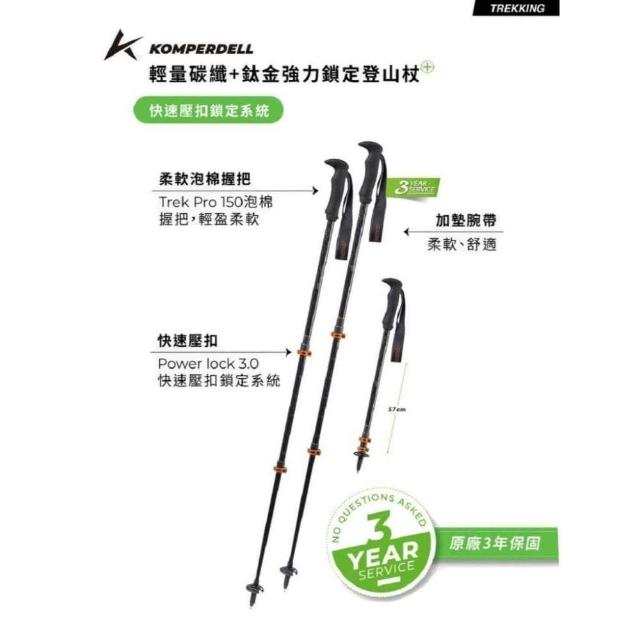 KOMPERDELL奧地利 輕量碳纖+鈦金強力鎖定登山杖 短版 175237110 黑 野外營 健行登山 碳纖輕量