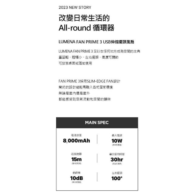 N9LUMENA FAN PRIME3 USB伸縮擺頭風扇 炭黑/純靜白/可可 野外營 露營 小風扇