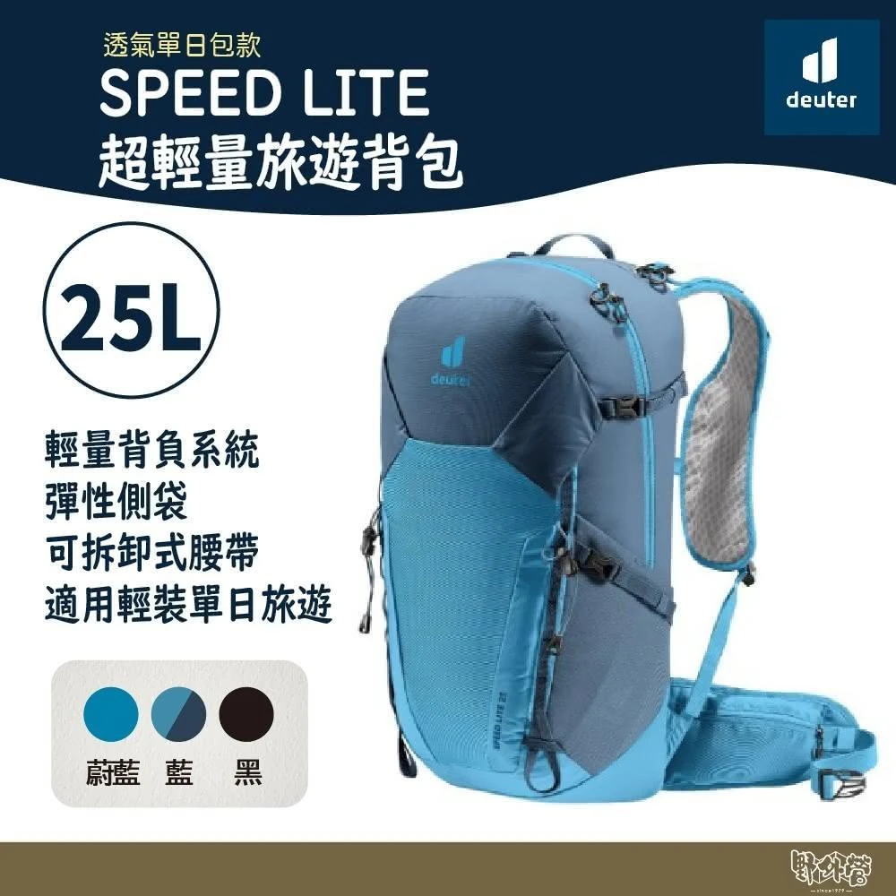 deuterSPEED LITE 超輕量旅遊背包 黑/蔚藍/黃 25L 3410422 野外營 登山包 健行包
