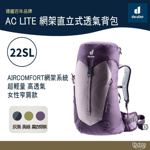 deuterAC LITE 22SL網架直立式透氣背包 3420724 野外營 黃綠/薰衣草紫/灰黑 登山背包 女款