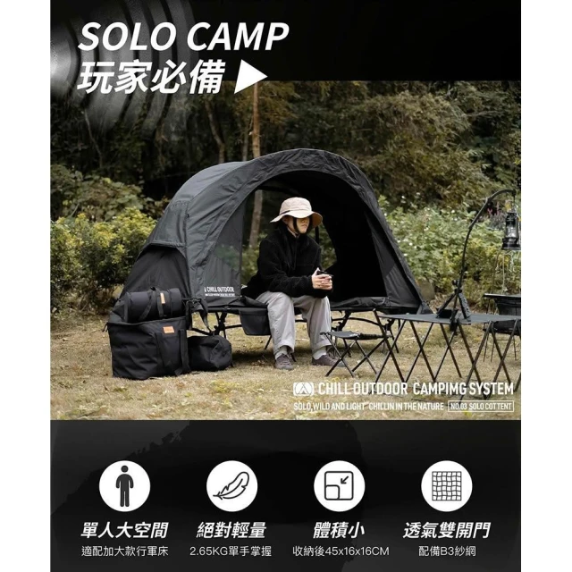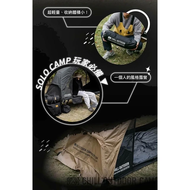 Chill Outdoor沙之萩輕量化單人帳篷 黑/沙 野外營 機露 露營 單人帳 行軍床帳篷 可加購天幕 連結布