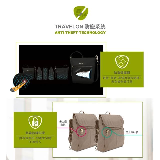 Travelon美國 Roam防盜後背包-聯名款 TL-43679A 黑色 野外營 旅遊休閒背包 防盜包