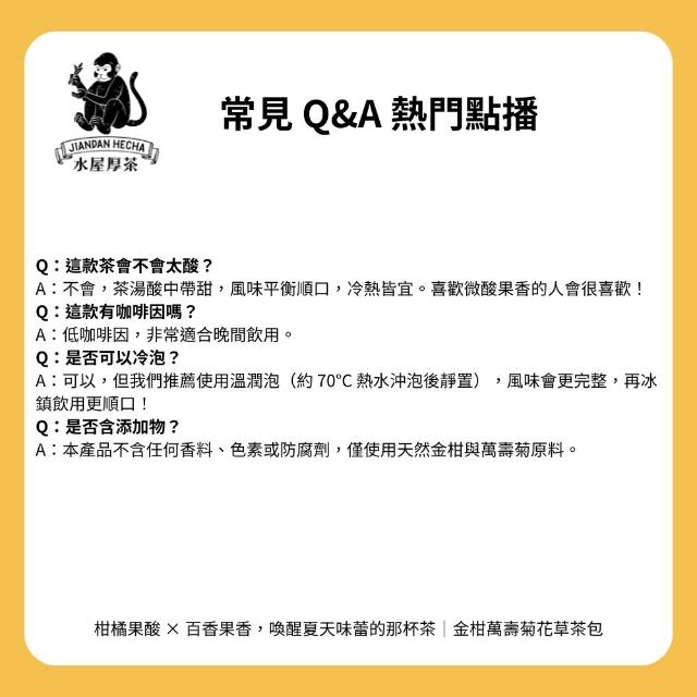 水屋厚茶【草本茶包】金柑萬壽菊茶 (8入/袋)|台灣製 清爽果香 低咖啡因 無添加 花草茶推薦