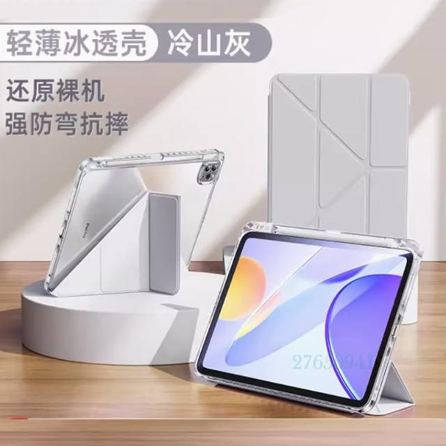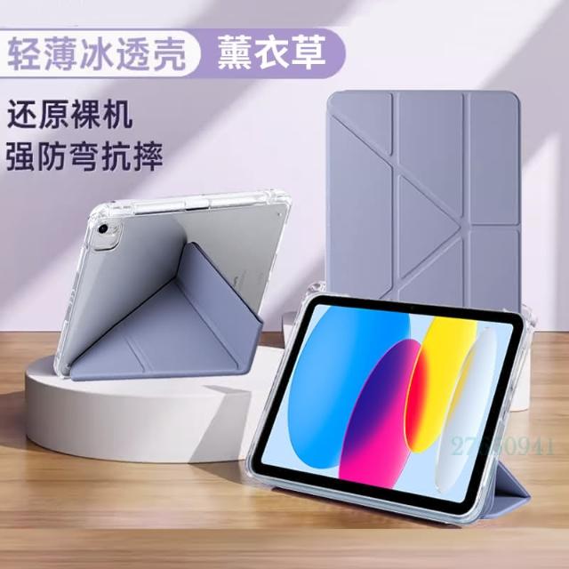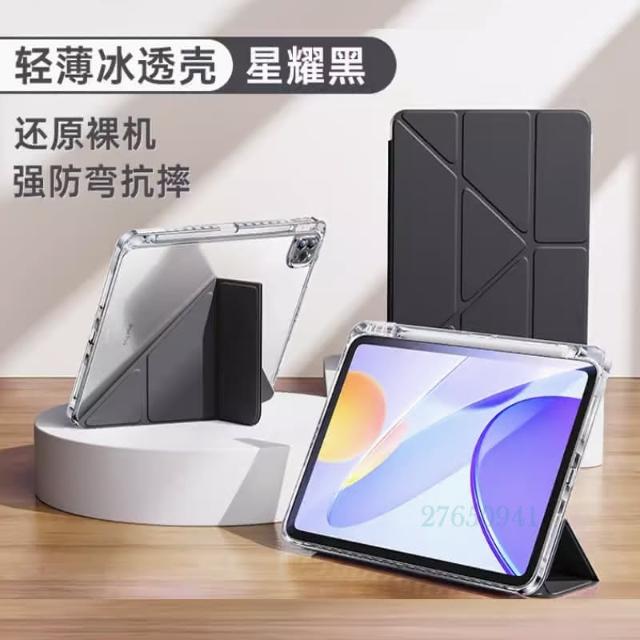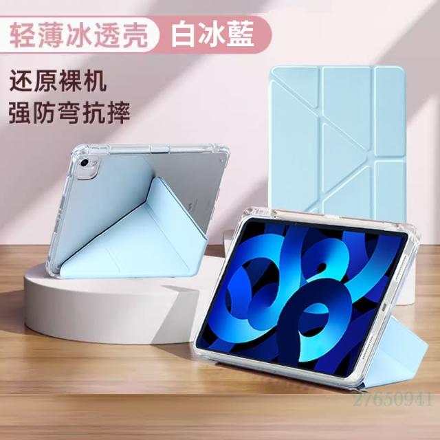 YMHWiPad 三折+Y折 筆槽 保護套 Air 6 13 Pro 12.9 吋 透明 保護殼 皮套 QU(iPad 保護套)
