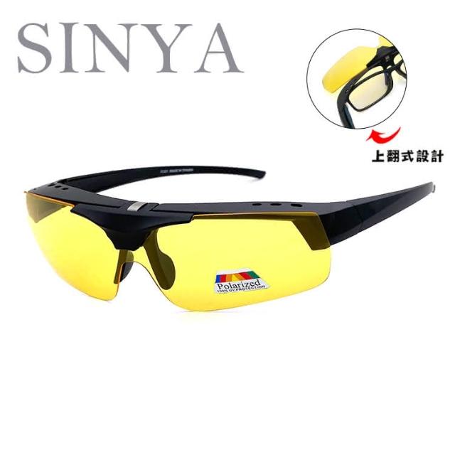 新雅百貨 台灣製夜視鏡 上翻式夜視偏光套鏡 Polarized眼鏡族首選 增加安全性 免脫眼鏡直接戴上(防眩光 防遠光燈 眼鏡族首選)