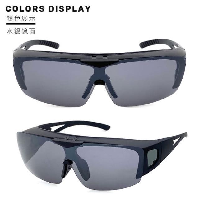 SINYA新雅百貨 台灣製頂級上翻式偏光墨鏡 黑框水銀面 輕量設計 休閒墨鏡 大框架包覆性佳 太陽眼鏡 免脫眼鏡 近視老花可直接套上(防眩光 遮陽 眼鏡族首選)