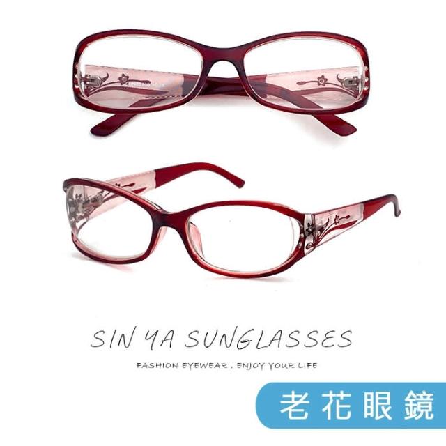 SINYA時尚老花眼鏡 台灣製 鑲鑽簍空玫瑰紅 75度~350度 新雅