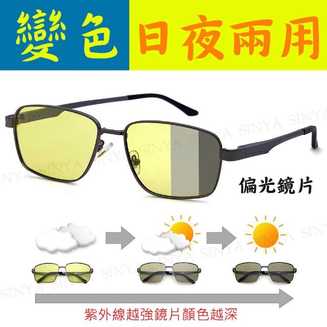 SINYA新雅百貨 變色鏡片 日夜兩用感光變色偏光太陽眼鏡 方形款 夜視鏡/防眩光反光/濾藍光/抗UV400 7052
