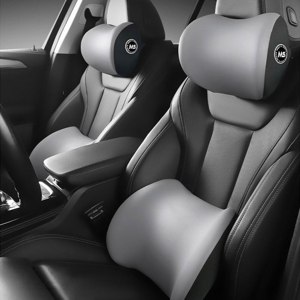 汽車記憶棉頭枕腰靠套組 車用護頸枕+護腰枕 汽車枕頭 記憶枕 車用護腰墊