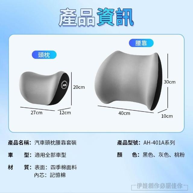 汽車記憶棉頭枕腰靠套組 車用護頸枕+護腰枕 汽車枕頭 記憶枕 車用護腰墊