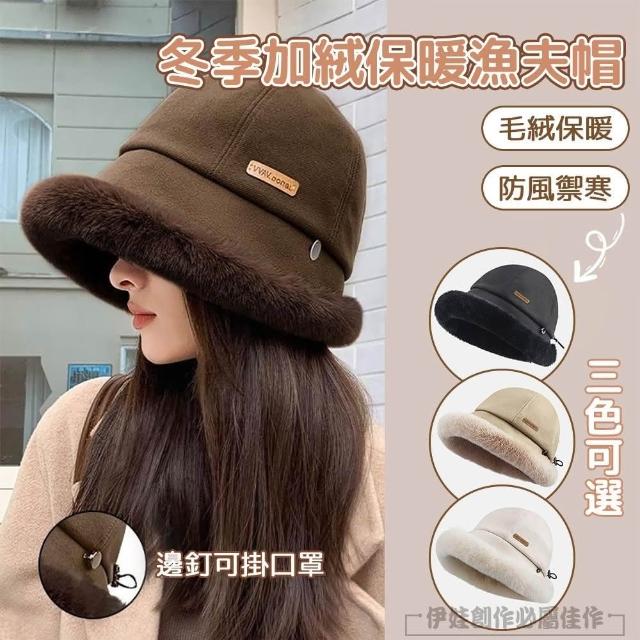 冬季加厚防寒保暖漁夫帽 大帽簷防風護耳盆帽 毛帽(可調節頭圍 水桶帽 保暖帽)