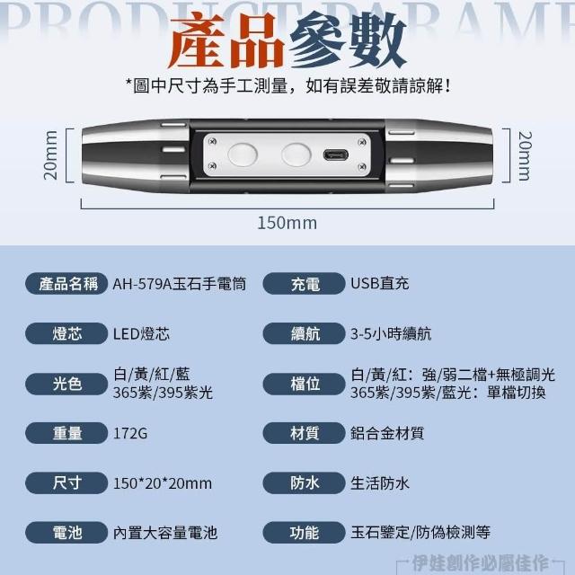 鑒寶級六光源照玉燈 6段可調 玉石翡翠鑒定專用手電筒 USB充電 紫光手電筒