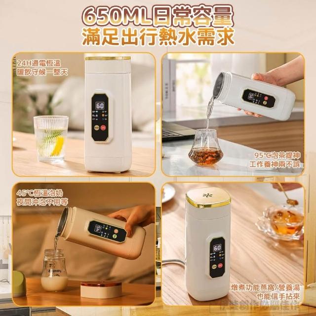 316不銹鋼電動燒水杯 智能數顯保溫杯 650ML 旅行便攜電熱水壺 快煮壺 交換禮物