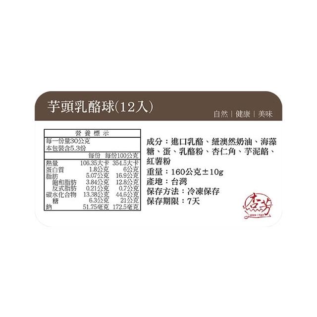 杏芳食品乳酪球任選口味禮盒2盒組12入/盒)