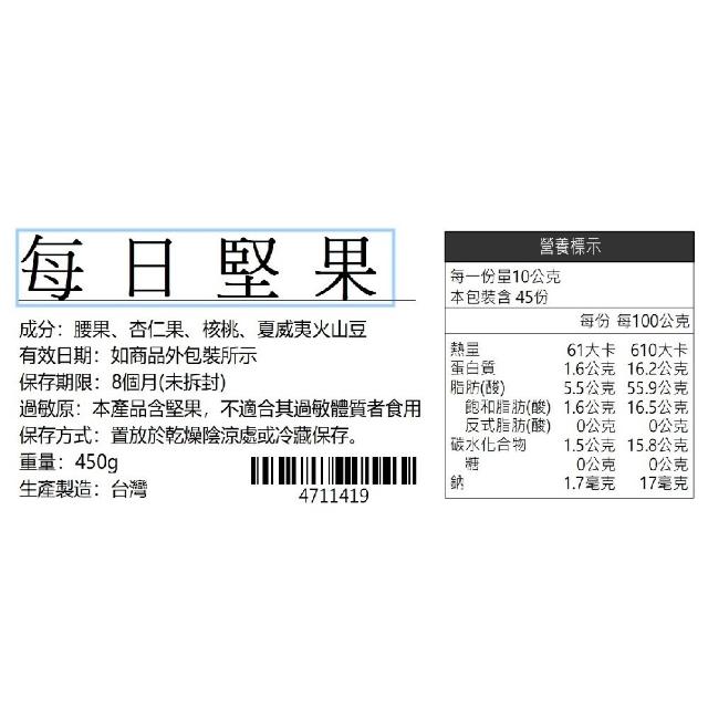 自然甜堅果每日綜合堅果隨手包(450g/袋內含14至17小包;腰果/杏仁/夏威夷火山豆/核桃)