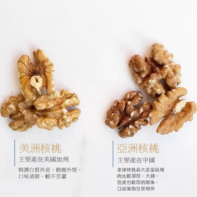 自然甜堅果原味核桃(亞洲),肉質比較飽滿,皮較厚口感甘苦相伴,了解後才購買