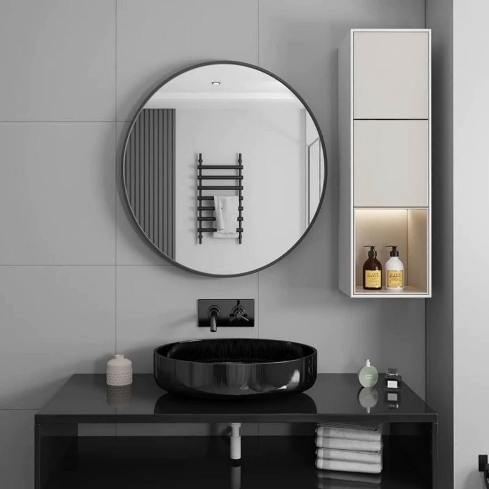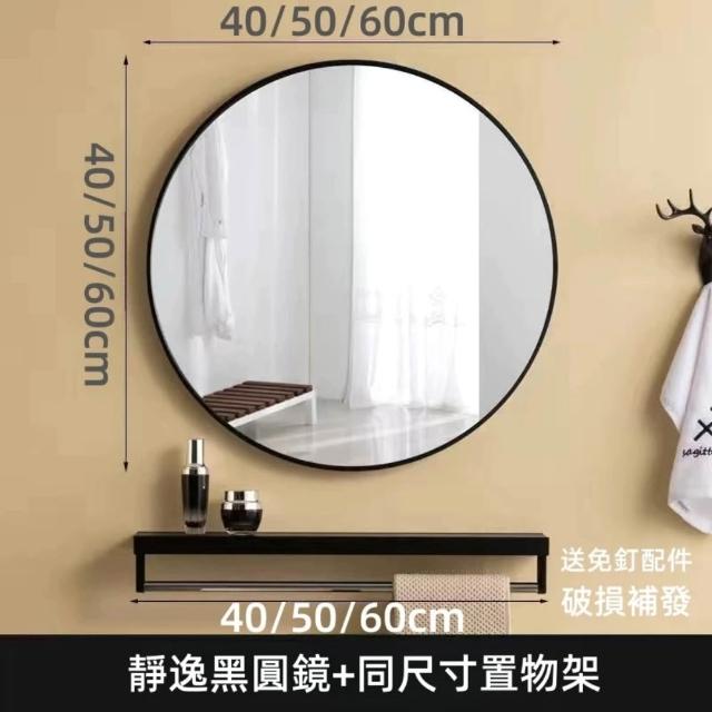 浴室鏡子 浴室鏡 掛鏡 北歐簡約衛生間鏡子 圓鏡 免打孔浴室鏡 圓形網紅鏡子廁所掛墻浴鏡子 浴室鏡子置物架