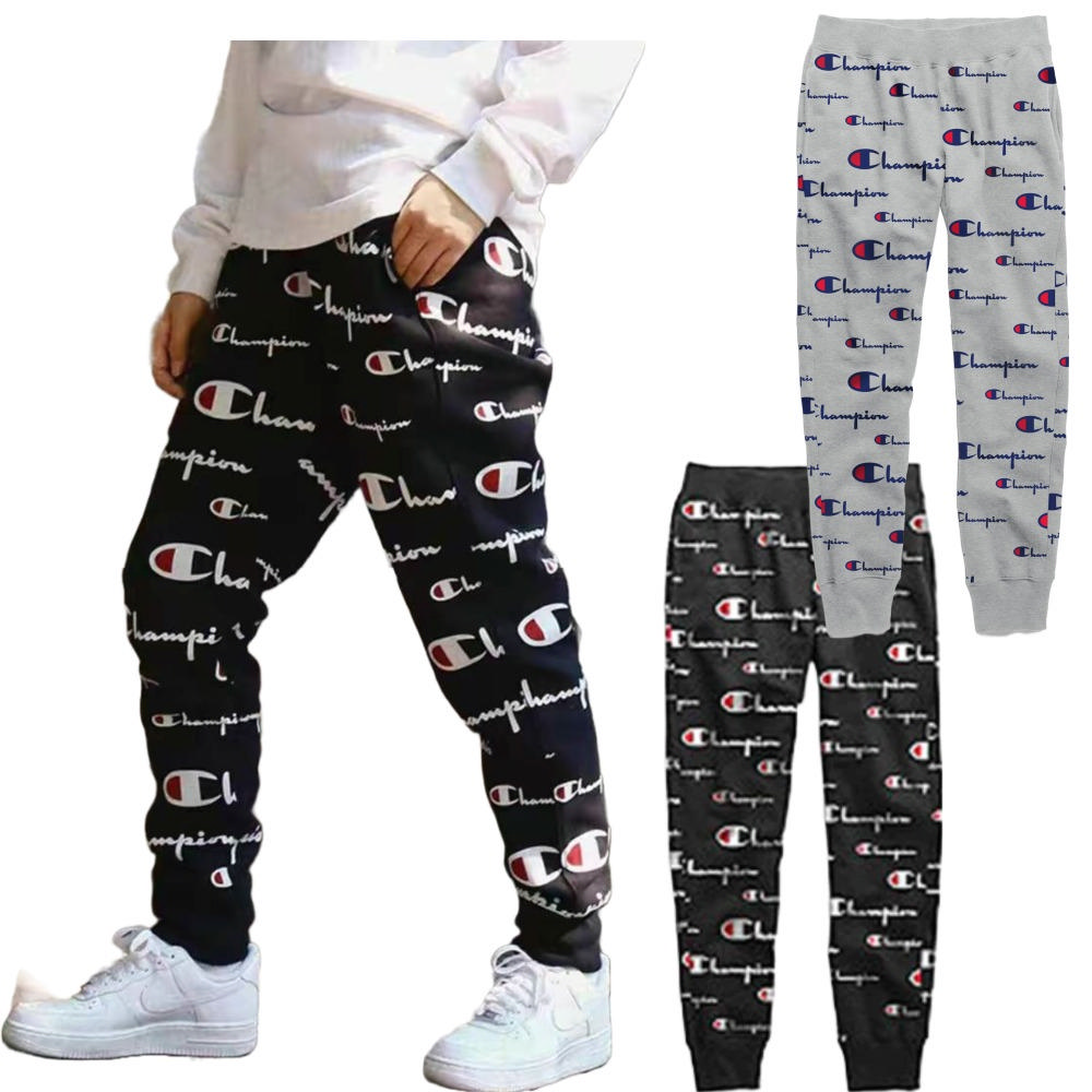 Champion冠軍 草寫印刷滿版LOGO 秋冬款 舖棉休閒褲 運動褲 束口褲(美國進口平行輸入)